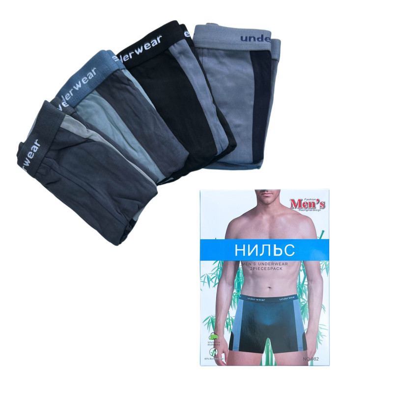 Бамбукові чоловічі труси боксери Нільс 2XL — Чоловічі труси вільного крою для щоденного носіння. Колір: Мікс кольорів. Склад: Бамбук 60%, Бавовна 32%, Еластан 8%. Виробник: НИЛЬС.