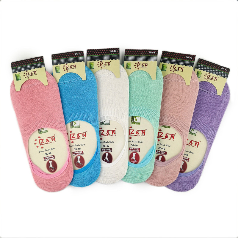 Бамбукові жіночі сліди з силіконом на п'яті Z&N Туреччина — Жіночі шкарпетки для носіння з відкритим та напіввідкритим взуттям. Колір: Мікс кольорів. Склад: Бамбук 90%, Поліамід 7%, Еластан 3%. Виробник: Z&N.