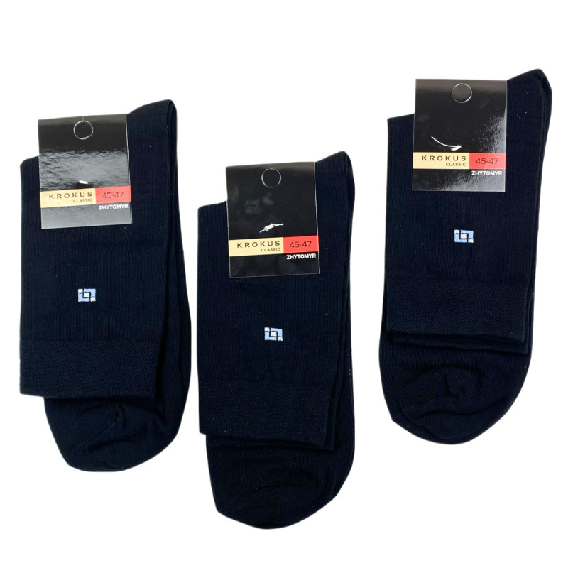 Бавовняні високі чоловічі шкарпетки великого розміру чорні 45-47 — Чоловічі шкарпетки для щоденного носіння. Колір: Чорний. Склад: Бавовна 80%, Поліамід 18%, Еластан 2%. Виробник: KROKUS.