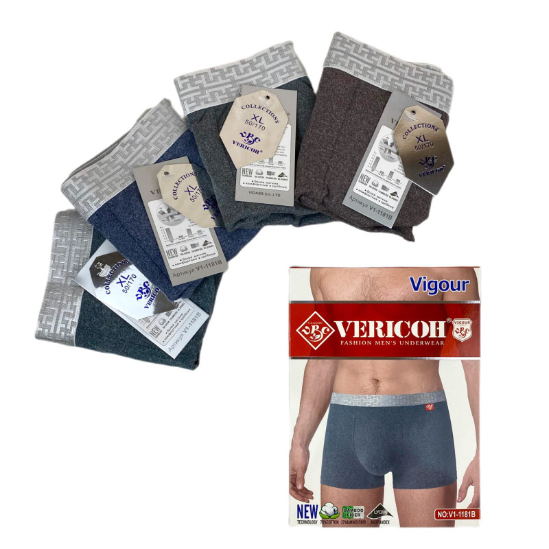 Чоловічі бавовняні труси боксери з додаванням бамбука Vericoh (меланж) 3XL — Чоловічі труси вільного крою для щоденного носіння. Колір: Мікс кольорів. Склад: Бавовна 70%, Бамбук 22%, Еластан 8%. Виробник: Vericoh.