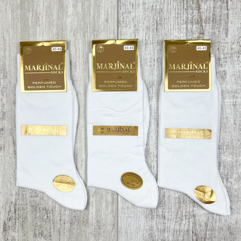 Чоловічі безшовні бавовняні високі шкарпетки білі Marjinal Туреччина — Чоловічі шкарпетки для щоденного носіння. Колір: Білий. Склад: Бавовна 90%, Поліамід 3%, Еластан 2%. Виробник: Marjinal.