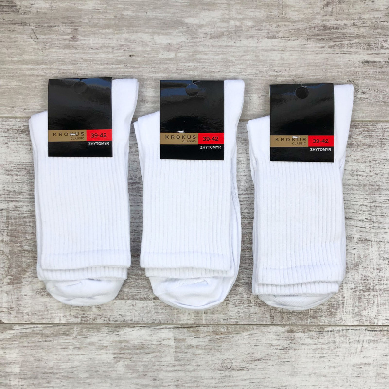 Чоловічі білі високі шкарпетки з бавовни Krokus (спортивна резинка) 39-42