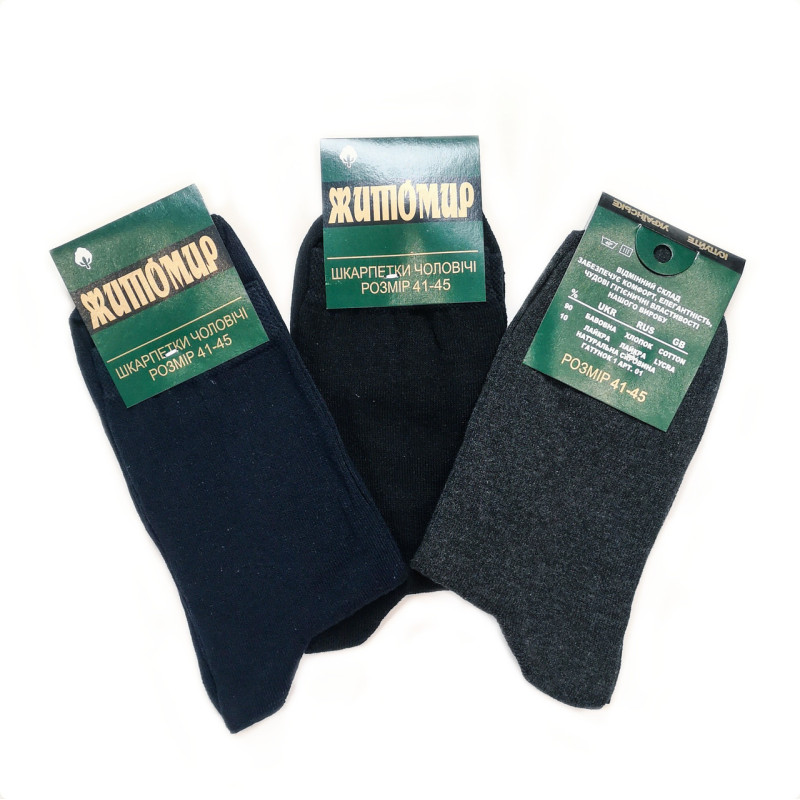 Чоловічі бавовняні демісезонні шкарпетки високі Житомир, 90% бавовна, розмір 41–45, Україна