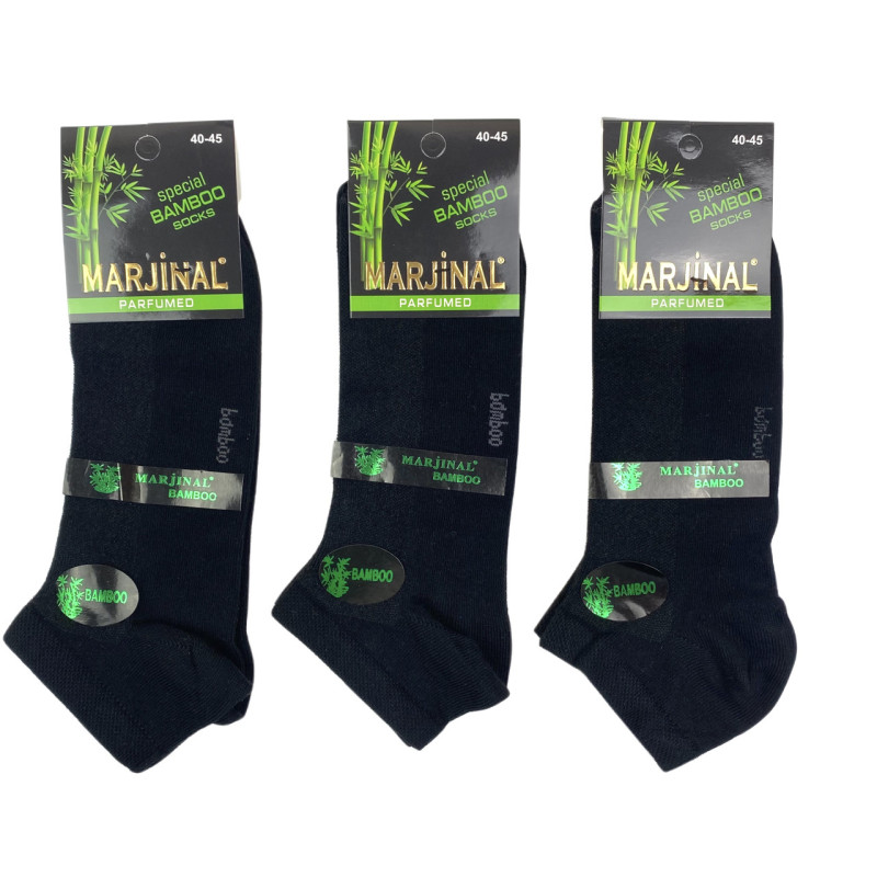 Чоловічі короткі бамбукові шкарпетки сітка чорні Marjinal — Чоловічі шкарпетки з бамбукового волокна. Колір: Чорний. Склад: Бамбук 90%, Поліамід 5%, Еластан 5%. Виробник: Marjinal.
