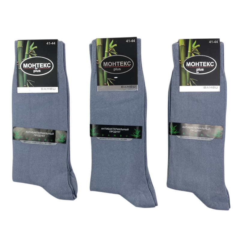 Чоловічі тонкі бавовняні шкарпетки високі світло-сірого кольору Монтекс — Чоловічі шкарпетки з бамбукового волокна. Колір: Світло-сірий. Склад: Бамбук 95%, Еластан 5%. Виробник: Monteks.