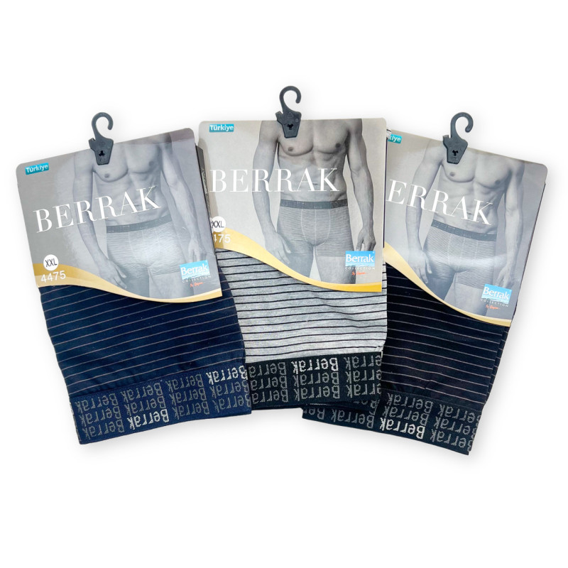 Чоловічі труси боксери з широкою резинкою Berrak XXL — Чоловічі труси вільного крою для щоденного носіння. Колір: Мікс кольорів. Склад: Бавовна 80%, Поліестер 67%, Поліамід 15%, Еластан 5%. Виробник: Berrak.