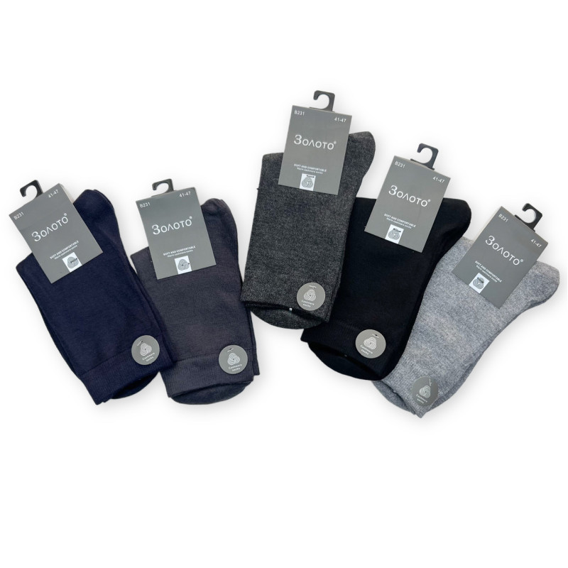 Чоловічі високі кашемірові шкарпетки Золото асорті — Чоловічі шкарпетки для носіння в холодну пору року. Колір: Мікс кольорів. Склад: Кашемір 65%, Поліестер 30%, Еластан 5%. Виробник: Золото.
