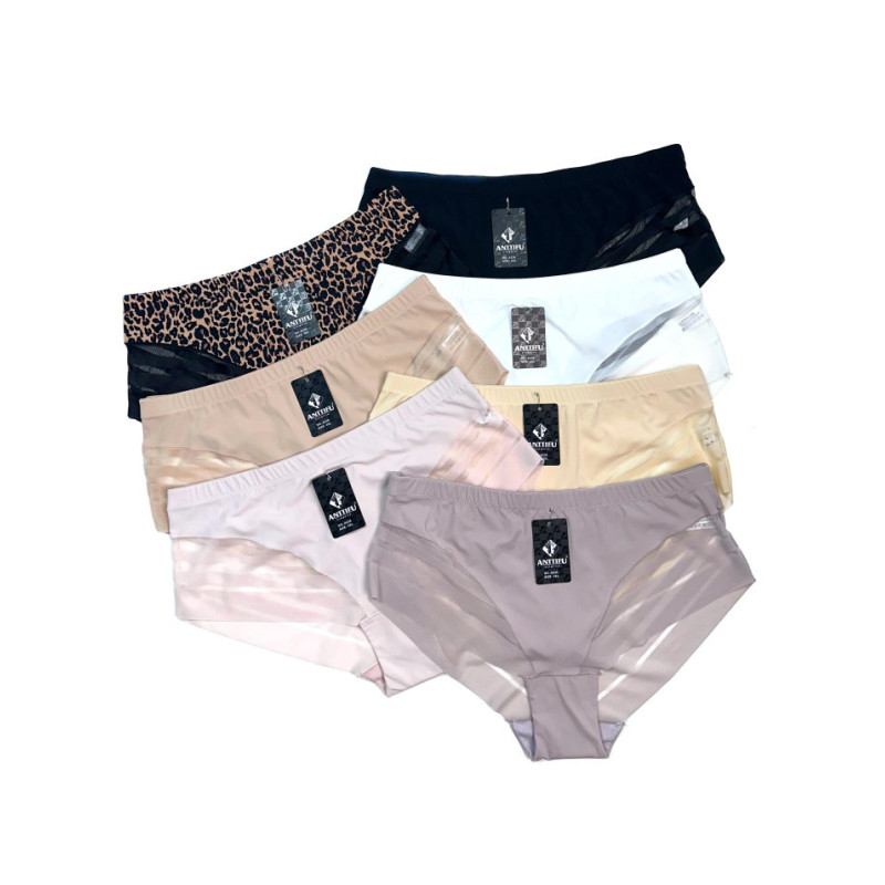 Гладкі труси сліпи з декоративною прозорою сіточкою Anttifu 3XL — Жіночі труси для повного комфорту у збільшених розмірах. Колір: Мікс кольорів. Склад: Поліамід 85%, Еластан 15%. Виробник: Anttifu Lingerie.