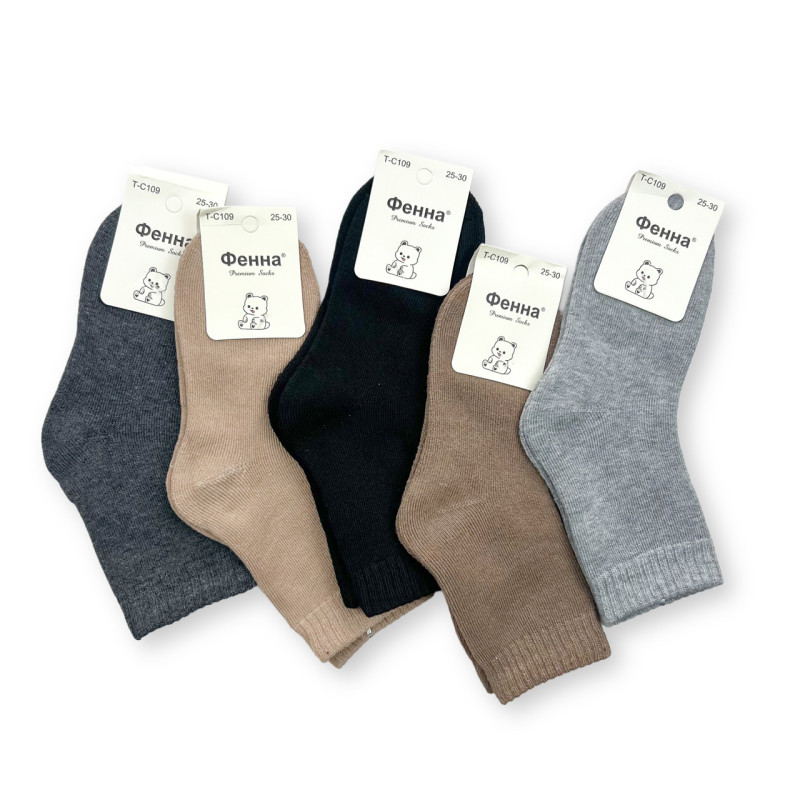 Комплект дитячих махрових шкарпеток Фенна 5 пар 20-25 — Дитячі шкарпетки для носіння в холодну пору року. Колір: Мікс кольорів. Склад: Бавовна 85%, Еластан 10%, Поліестер 5%. Виробник: Фенна.