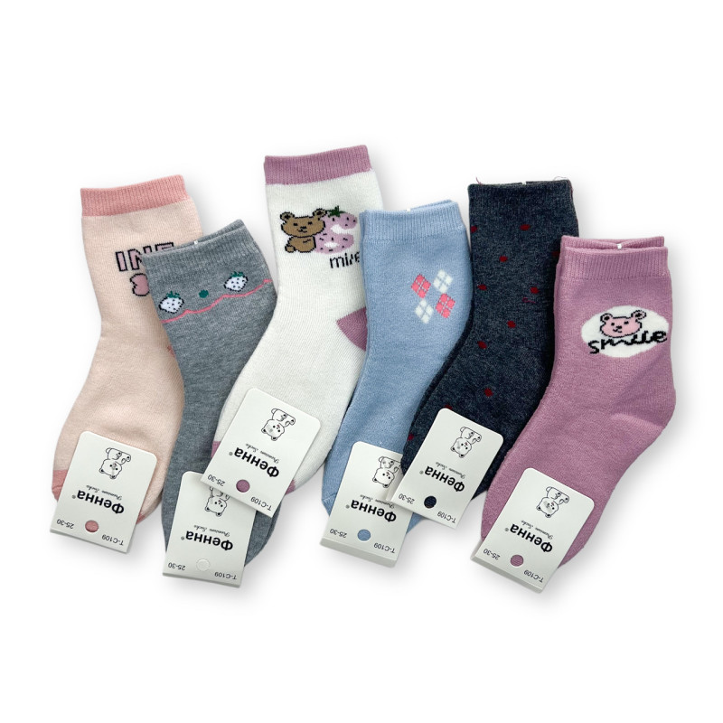 Комплект дитячих яскравих махрових шкарпеток Фена 6 пар 25-30 — Дитячі шкарпетки для носіння в холодну пору року. Колір: Мікс кольорів. Склад: Бавовна 85%, Еластан 10%, Поліестер 5%. Виробник: Фенна.