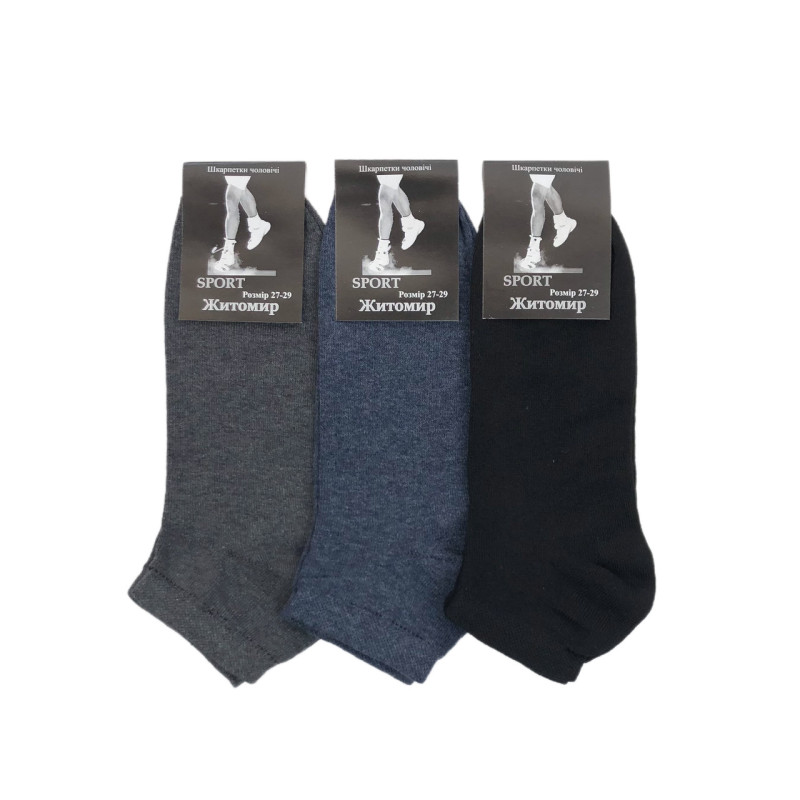Короткі бавовняні чоловічі шкарпетки Sport Житомир 27-29 — Чоловічі шкарпетки для щоденного носіння. Колір: Мікс кольорів. Склад: Бавовна 70%, Поліамід 20%, Еластан 10%. Виробник: Житомир.