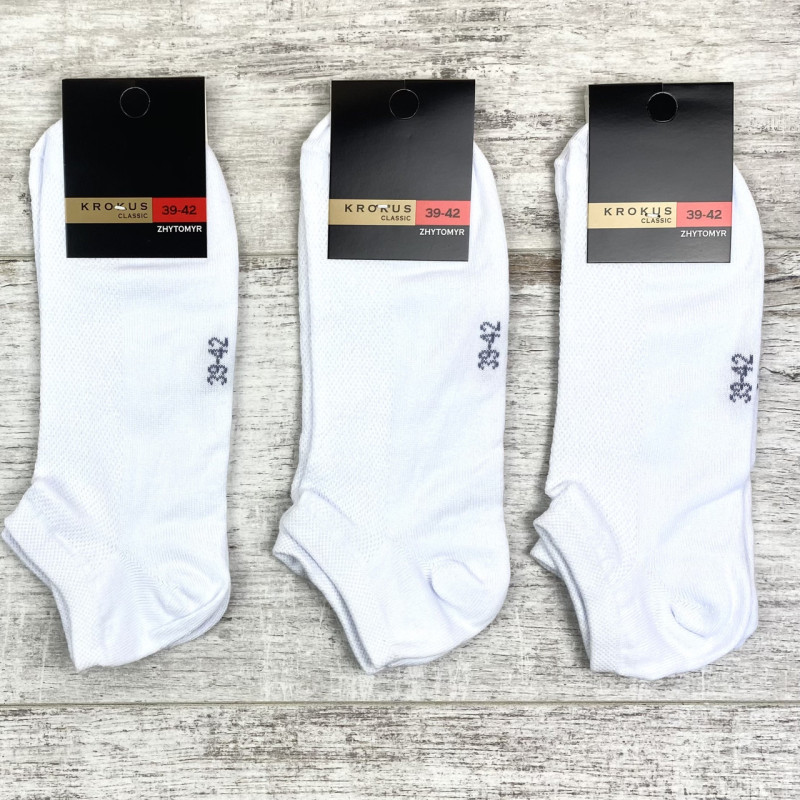 Короткі чоловічі бавовняні білі шкарпетки сітка Krokus (премиум) 39-42