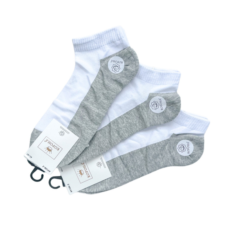 Короткі чоловічі шкарпетки білі з сірою підошвою ( з сіточкою) Корона