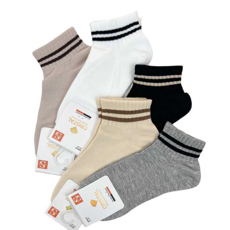 Короткі жіночі бавовняні шкарпетки зі смужками на резинці Cristal Бежевий — Жіночі шкарпетки для щоденного носіння. Колір: Бежевий. Склад: Бавовна 80%, Поліамід 15%, Еластан 5%. Виробник: Cristal.