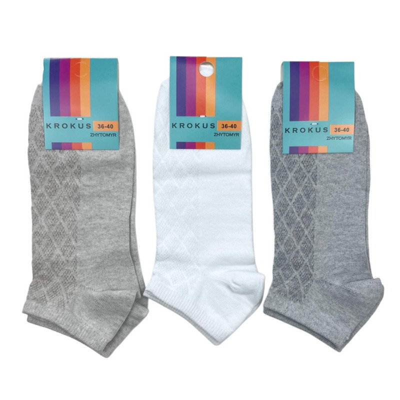 Короткі жіночі бавовняні шкарпетки з сіточкою Krokus Світло-бежевий — Жіночі шкарпетки для щоденного носіння. Колір: Світло-бежевий. Склад: Бавовна 80%, Поліамід 18%, Еластан 2%. Виробник: KROKUS.