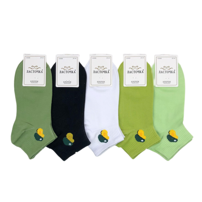 Короткі жіночі однотонні шкарпетки з авокадо (спортивна резинка) Ласточка — Жіночі шкарпетки для щоденного носіння. Колір: Мікс кольорів. Склад: Бавовна 90%, Еластан 5%, Поліамід 5%. Виробник: Ластівка.