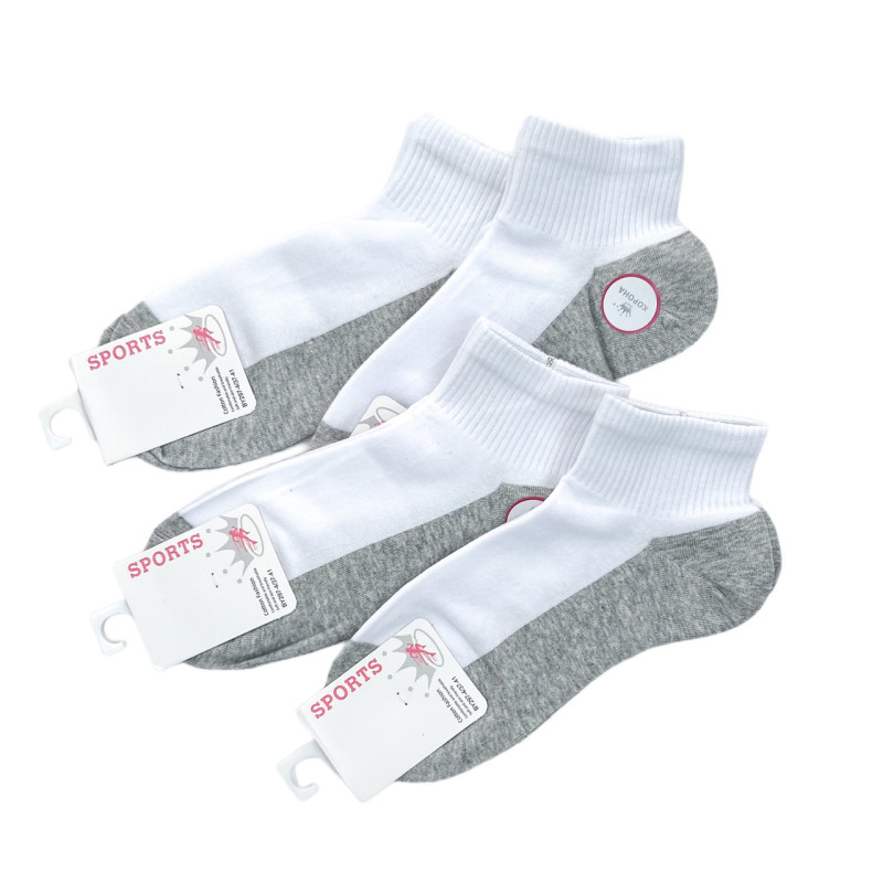 Короткі жіночі шкарпетки білі з сірою підошвою (спортивная резинка) Корона — Жіночі шкарпетки для щоденного носіння. Колір: Білий. Склад: Бавовна 80%, Еластан 15%, Поліамід 5%. Виробник: Корона.