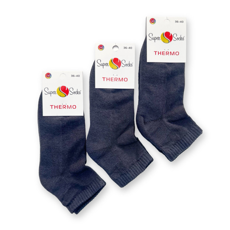 Короткі жіночі термо шкарпетки з махровою стопою Super Socks Темно-сірий — Жіночі шкарпетки для носіння в холодну пору року. Колір: Темно-сірий. Склад: Бавовна 85%, Поліамід 13%, Еластан 2%. Виробник: Super Socks.