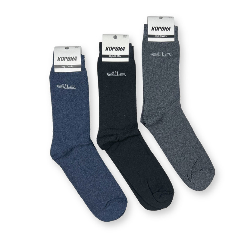 Махрові чоловічі високі шкарпетки з додаванням бамбука Корона — Чоловічі шкарпетки для носіння в холодну пору року. Колір: Мікс кольорів. Склад: Бавовна 80%, Бамбук 10%, Еластан 10%. Виробник: Корона.