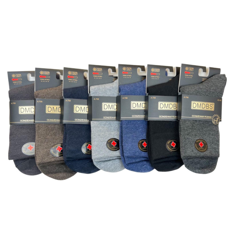 Медичні кашемірові чоловічі шкарпетки з ослабленою резинкою DMDBS 10 пар — Чоловічі шкарпетки з м'яким манжетом без тугої гумки. Колір: Мікс кольорів. Склад: Кашемір 80%, Еластан 15%, Поліамід 5%. Виробник: DMDBS.