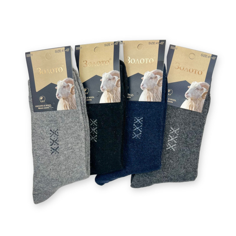 Набір чоловічих ангорових теплих високих шкарпеткок (4 пари) Золото — Чоловічі шкарпетки для носіння в холодну пору року. Колір: Мікс кольорів. Склад: Ангора 75%, Вовна 20%, Еластан 5%. Виробник: Золото.