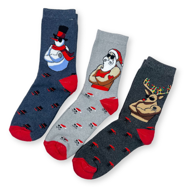 Набір чоловічих новорічних махрових шкарпеток 3 пари (силачі) Style Luxe — Чоловічі шкарпетки з тематичними малюнками до зимових свят. Колір: Мікс кольорів. Склад: Бавовна 85%, Поліестер 11%, Еластан 4%. Виробник: STYLE LUXE.
