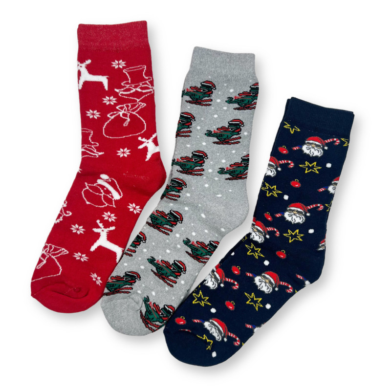 Набір чоловічих новорічних махрових шкарпеток 3 пари Style Luxe — Чоловічі шкарпетки з тематичними малюнками до зимових свят. Колір: Мікс кольорів. Склад: Бавовна 85%, Поліестер 11%, Еластан 4%. Виробник: STYLE LUXE.