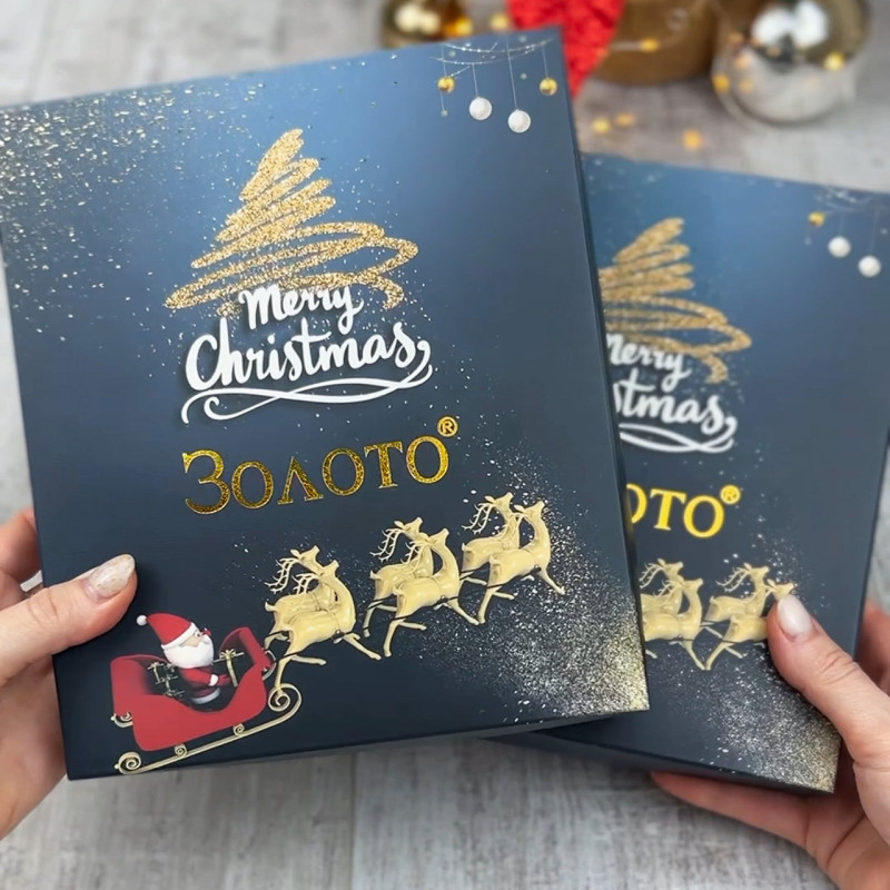 Набір чоловічих новорічних шкарпеток у подарунковому пакуванні 4 пари Золото — Чоловічі шкарпетки з тематичними малюнками до зимових свят. Колір: Мікс кольорів. Склад: Бавовна 65%, Поліестер 30%, Еластан 5%. Виробник: Золото.