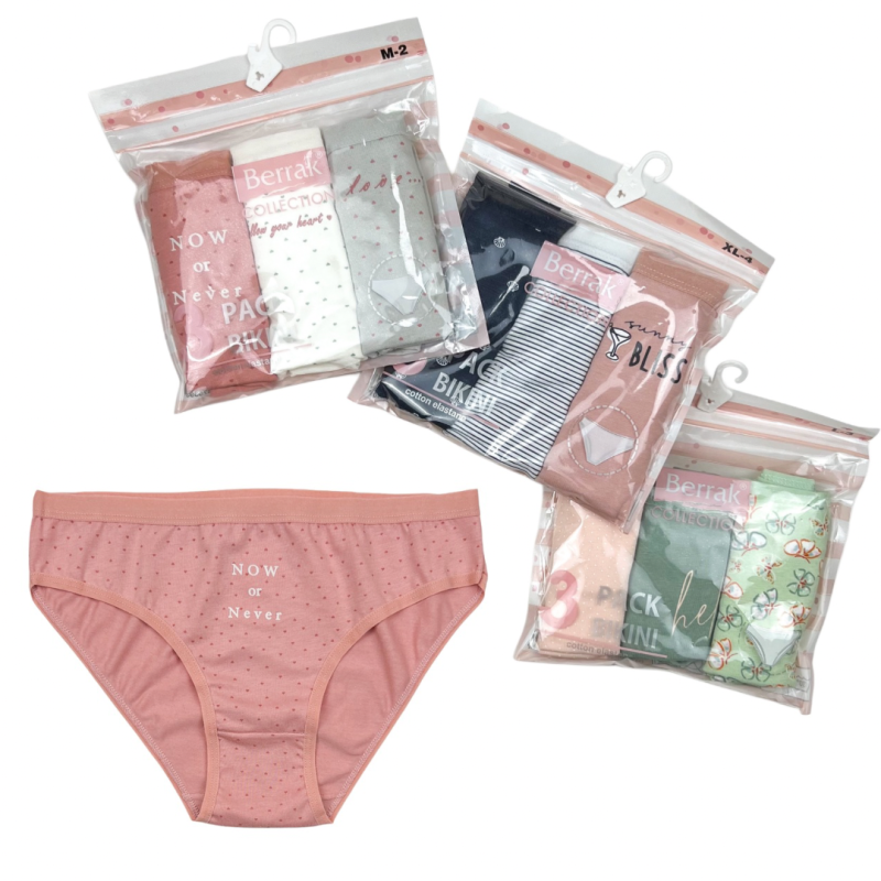 Набір жіночих бавовняних трусиків сліп (3шт) Berrak Туреччина L — Жіночі труси класичного крою для щоденного носіння. Колір: Мікс кольорів. Склад: Бавовна 95%, Еластан 5%. Виробник: Berrak.
