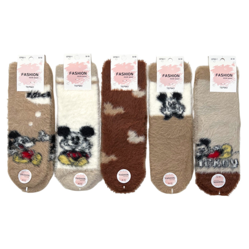 Норкові дитячі шкарпетки з міккі маусом Fashion 8-10 — Дитячі шкарпетки для носіння в холодну пору року. Колір: Мікс кольорів. Склад: Вовна Норки 80%, Поліестер 15%, Еластан 5%. Виробник: Корона.