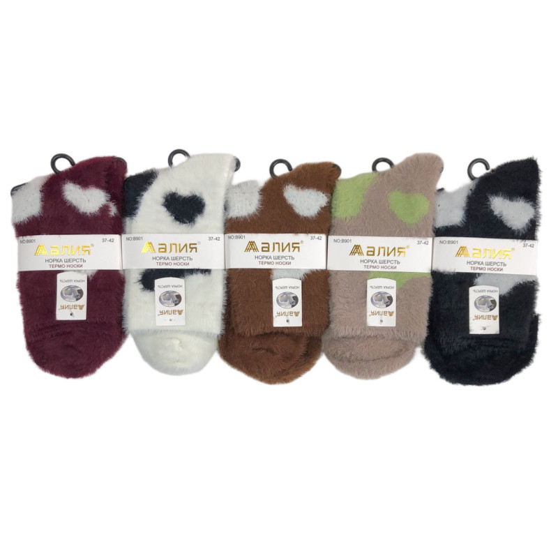 Норкові жіночі пухнасті шкарпетки з кашеміром Аалия (плямисті)