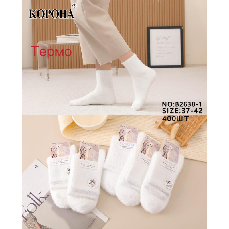 Норкові жіночі шкарпетки середньої висоти зі спортивною фіксуючою резинкою Корона — Жіночі шкарпетки для носіння в холодну пору року. Колір: Білий. Склад: Норкова вовна 80%, Поліамід 15%, Еластан 5%. Виробник: Корона.