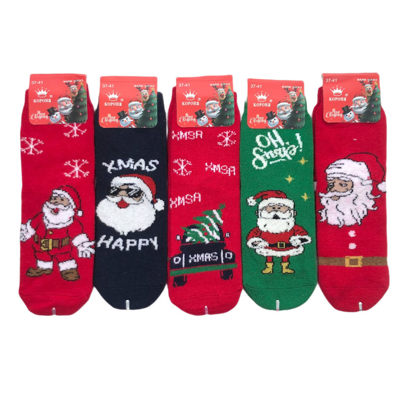 Новорічні жіночі ангорові шкарпетки Корона — Жіночі шкарпетки з тематичними малюнками до зимових свят. Колір: Мікс кольорів. Склад: Ангора 75%, Вовна 20%, Еластан 5%. Виробник: Корона.