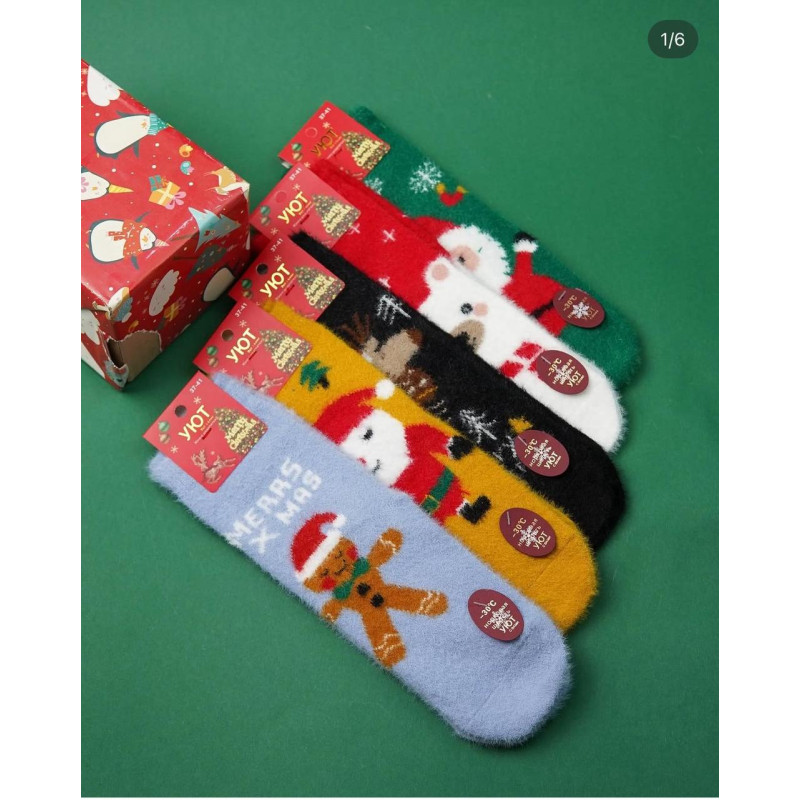 Подарунковий набір з 5 пар жіночих норкових шкарпеток Уют — Жіночі шкарпетки з тематичними малюнками до зимових свят. Колір: Мікс кольорів. Склад: Вовна Норки 90%, Еластан 10%. Виробник: Без бренду.
