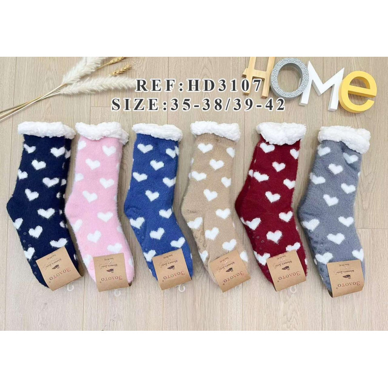 Пухнасті жіночі домашні шкарпетки валянки на хутрі з сердечками та силіконом на підошві Золото 39-42, Блакитний — Жіночі шкарпетки для носіння в холодну пору року. Колір: Блакитний. Склад: Акрил 65%, Поліестер 30%, Еластан 5%. Виробник: Золото.