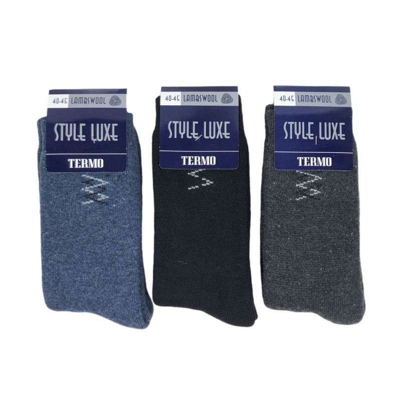 Шерстяні теплі чоловічі шкарпетки з махрою всередині Style Luxe — Чоловічі шкарпетки для носіння в холодну пору року. Колір: Мікс кольорів. Склад: Вовна 85%, Поліамід 10%, Еластан 5%. Виробник: STYLE LUXE.