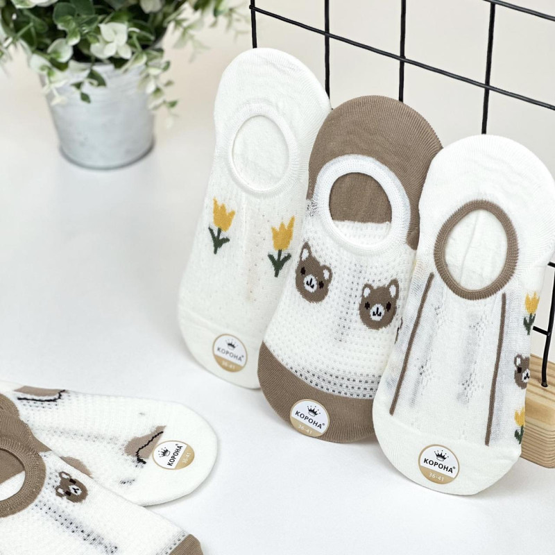 Сліди бавовняні з перфорацією (з силіконом на пʼятці) Корона — Жіночі шкарпетки для носіння з відкритим та напіввідкритим взуттям. Колір: Мікс кольорів. Склад: Бавовна 90%, Еластан 5%. Виробник: Корона.
