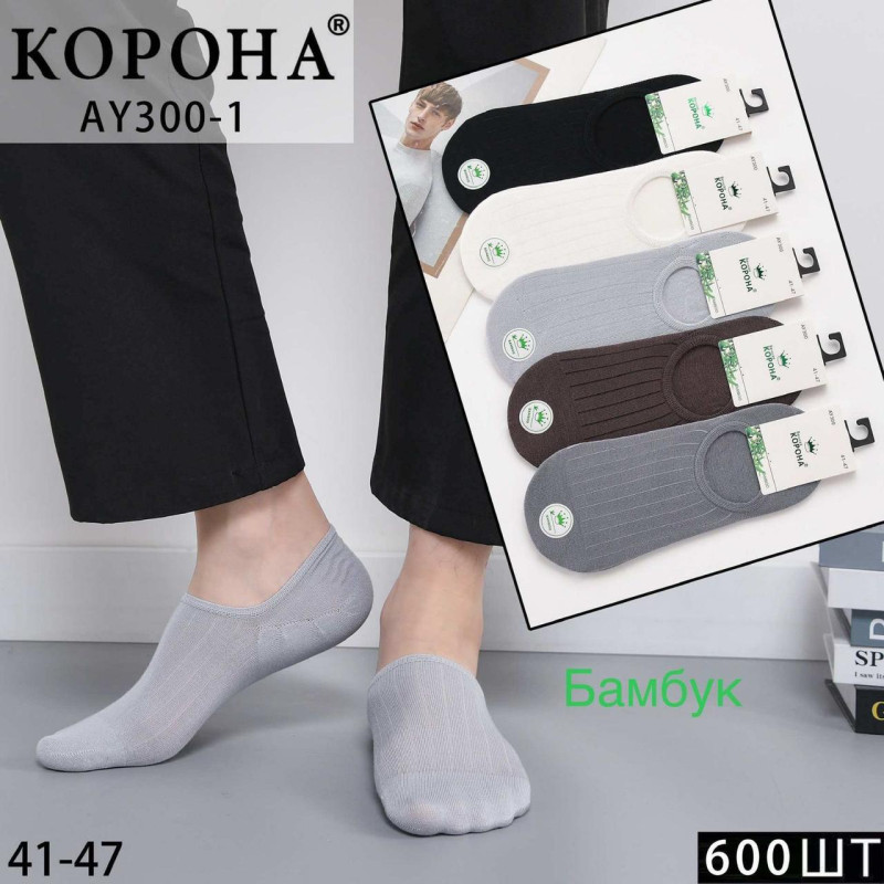 Слідки чоловічі бамбукові з силіконом Корона — Чоловічі шкарпетки для носіння з відкритим та напіввідкритим взуттям. Колір: Мікс кольорів. Склад: Бамбук 90%, Поліестер 5%, Еластан 5%. Виробник: Корона.