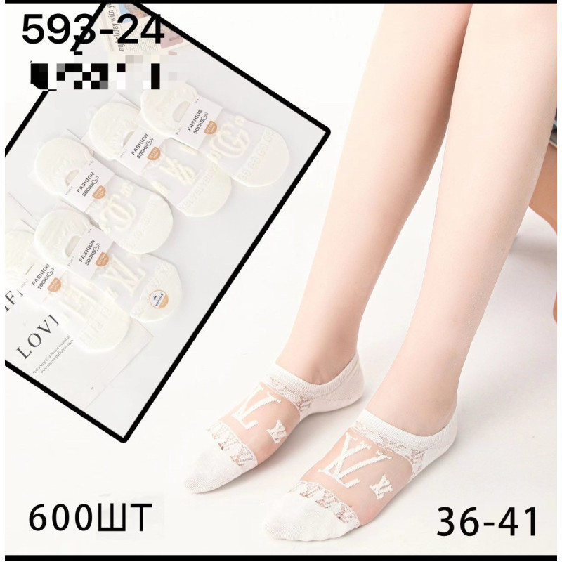 Слідки жіночі бавовняні з прозорою сіткою LV — Жіночі шкарпетки для носіння з відкритим та напіввідкритим взуттям. Колір: Молочний. Склад: Бавовна 90%, Еластан 5%. Виробник: Без бренду.