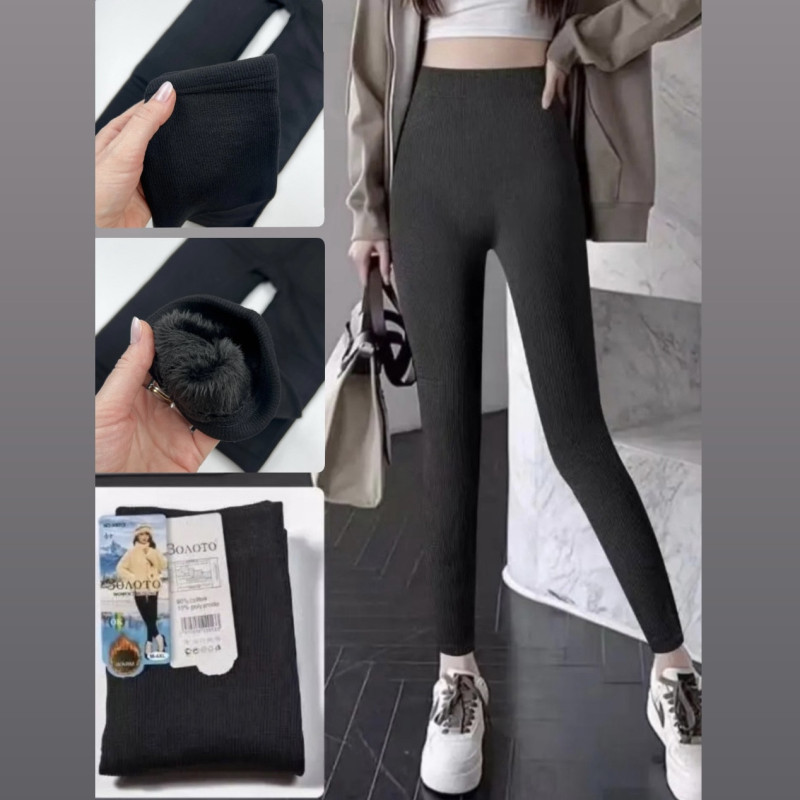 Термолосини жіночі на хутрі в рубчик Золото XL-6XL — Жіноча білизна для повсякденного носіння. Колір: Чорний. Склад:. Виробник: Золото.