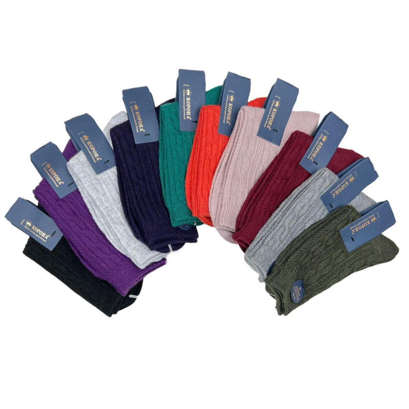 Тонкі вовняні шкарпетки Корона — Жіночі шкарпетки для носіння в холодну пору року. Колір: Мікс кольорів. Склад: Вовна 75%, Бавовна 20%, Еластан 5%. Виробник: Корона.