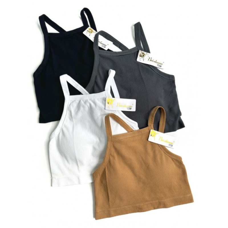 Топ жіночий в рубчик з асиметричними бретелями Beisdanna Білий — Жіноча білизна для носіння вдома або під верхній одяг. Колір: Білий. Склад: Поліамід 92%, Еластан 8%. Виробник: Beisdanna.