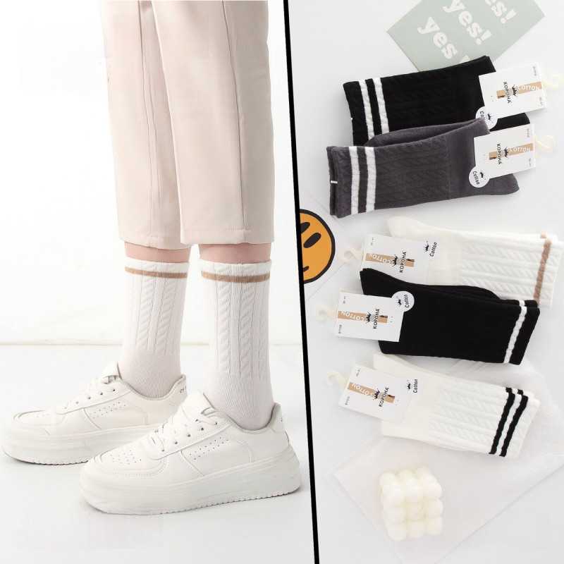Високі жіночі бавовняні шкарпетки зі смужками на манжеті Корона Чорний