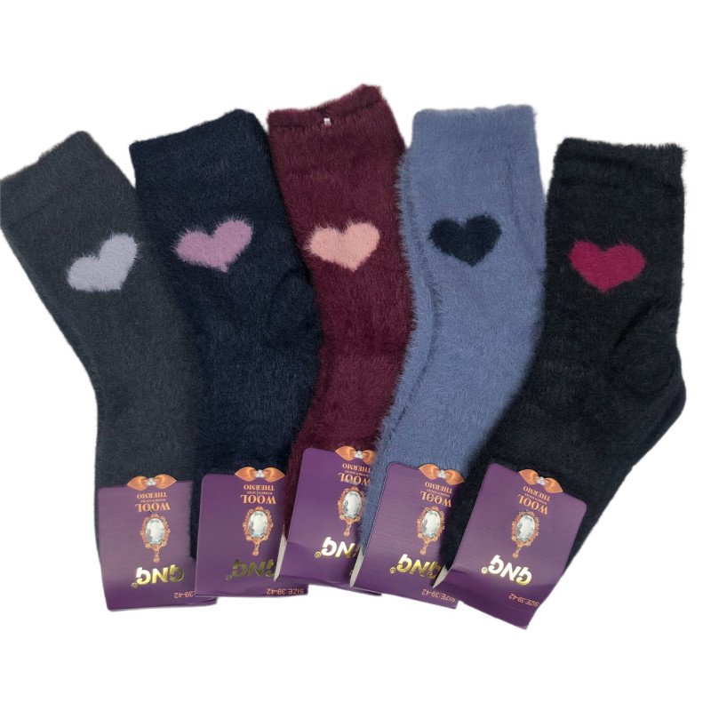 Жіночі ангорові шкарпетки з сердечком GNG 39-42 — Жіночі шкарпетки для носіння в холодну пору року. Колір: Мікс кольорів. Склад: Ангора 95%, Еластан 5%. Виробник:.