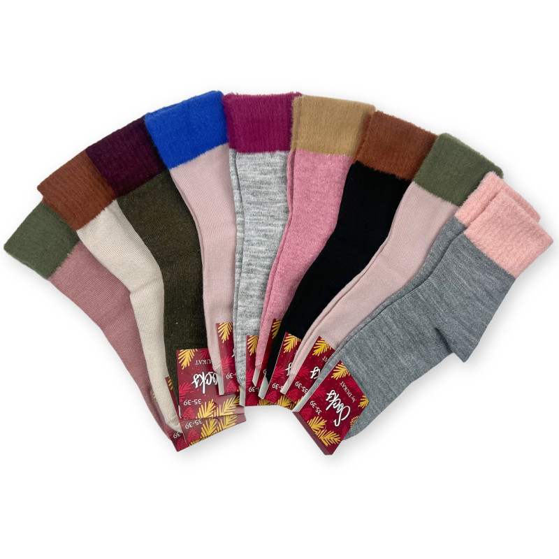 Жіночі ангорові яскраві шкарпетки з пухнастим верхом без махри