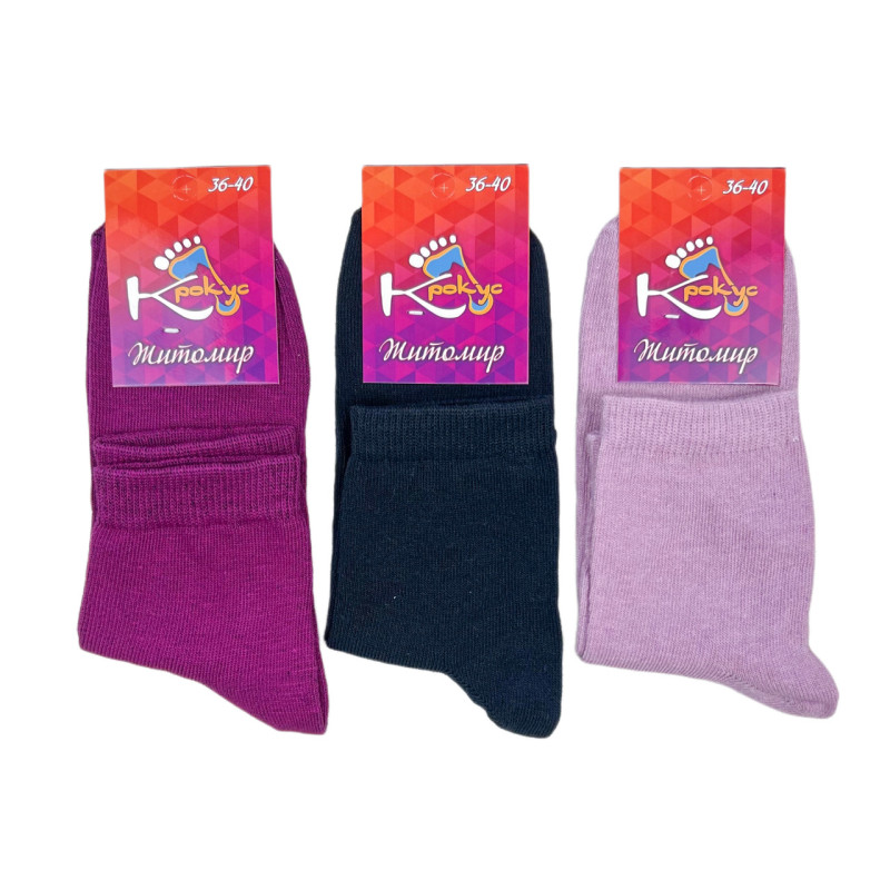 Жіночі бавовняні середні шкарпетки Krokus (однотонні) — Жіночі шкарпетки для щоденного носіння. Колір: Мікс кольорів. Склад: Бавовна 90%, Поліестер 8%, Еластан 2%. Виробник: KROKUS.
