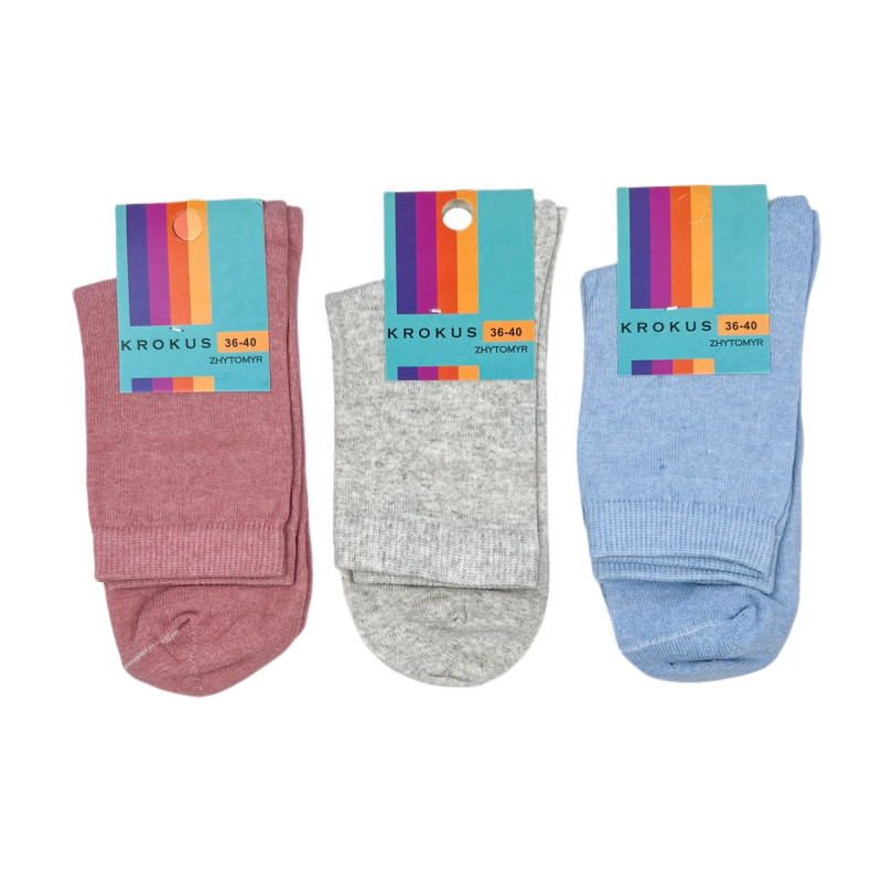 Жіночі бавовняні середні шкарпетки Krokus (однотонні) — Жіночі шкарпетки для щоденного носіння. Колір: Мікс кольорів. Склад: Бавовна 80%, Поліамід 18%, Еластан 2%. Виробник: KROKUS.