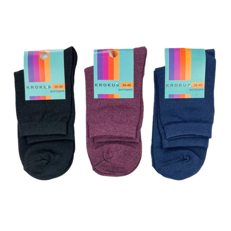 Жіночі бавовняні середні шкарпетки Krokus (однотонні) — Жіночі шкарпетки для щоденного носіння. Колір: Мікс кольорів. Склад: Бавовна 80%, Поліамід 18%, Еластан 2%. Виробник: KROKUS.