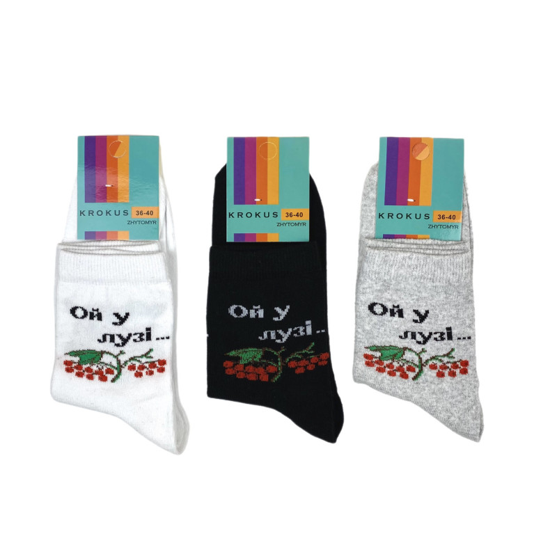 Жіночі бавовняні шкарпетки "Ой у лузі червона калина" — Жіночі шкарпетки для щоденного носіння. Колір:. Склад:. Виробник: KROKUS.