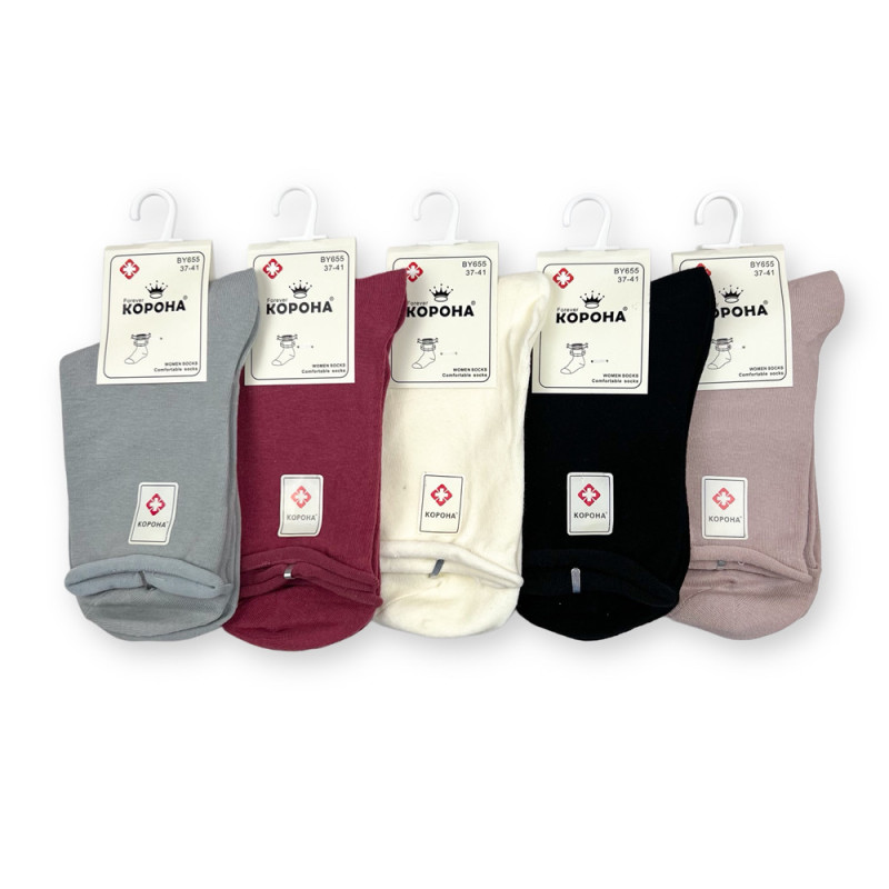 Жіночі бавовняні шкарпетки без резинки Корона 10 пар — Жіночі шкарпетки для носіння протягом усього дня. Колір: Мікс кольорів. Склад:. Виробник: Корона.